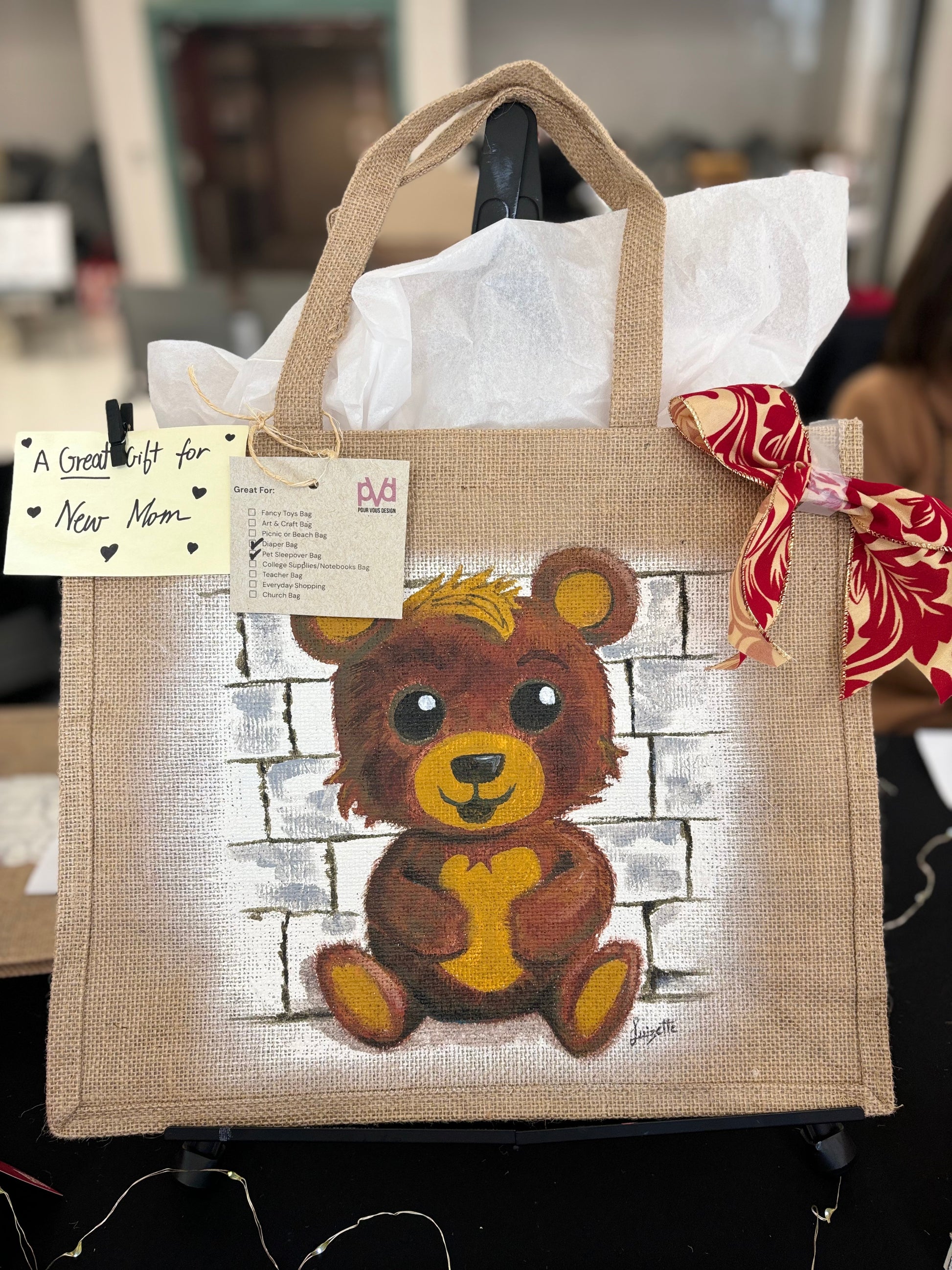 Get ready for the ultimate sleepover with this unique Teddy Bear Sleepover Bag. Hand-crafted and hand-painted with upcycled materials, this bag is not only one-of-a-kind but also environmentally friendly. Perfect for any little one and makes for a hot holiday gift. Get yours now!